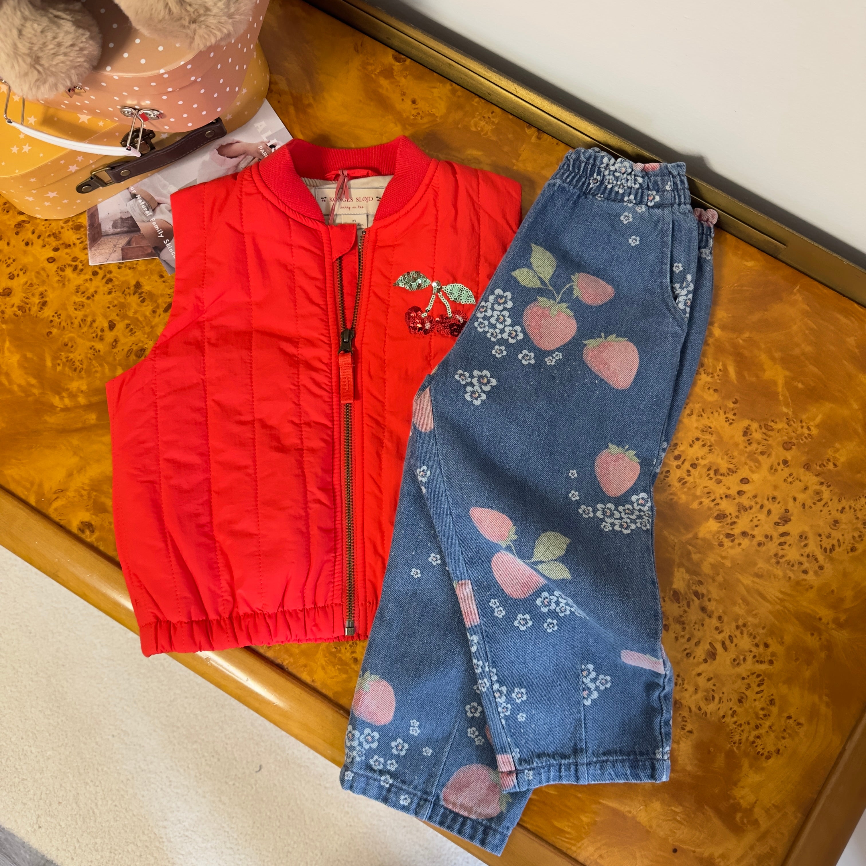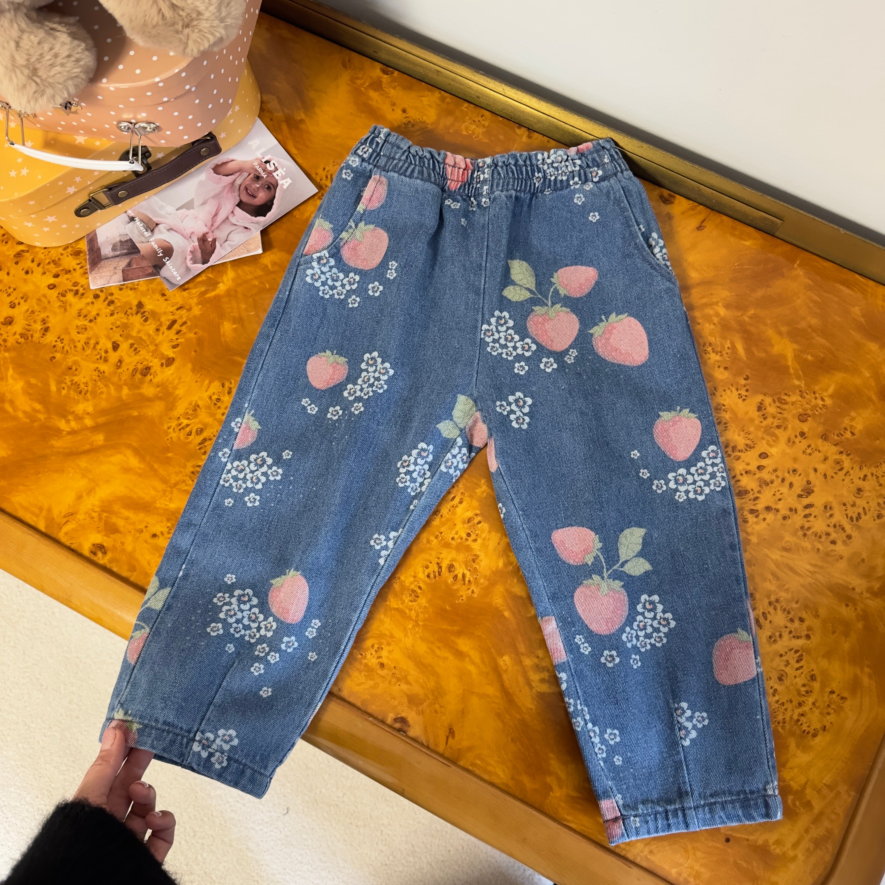 Konges Sløjd - MAGOT FRILL PANTS- pantalone in denim morbidissimo con fragoline