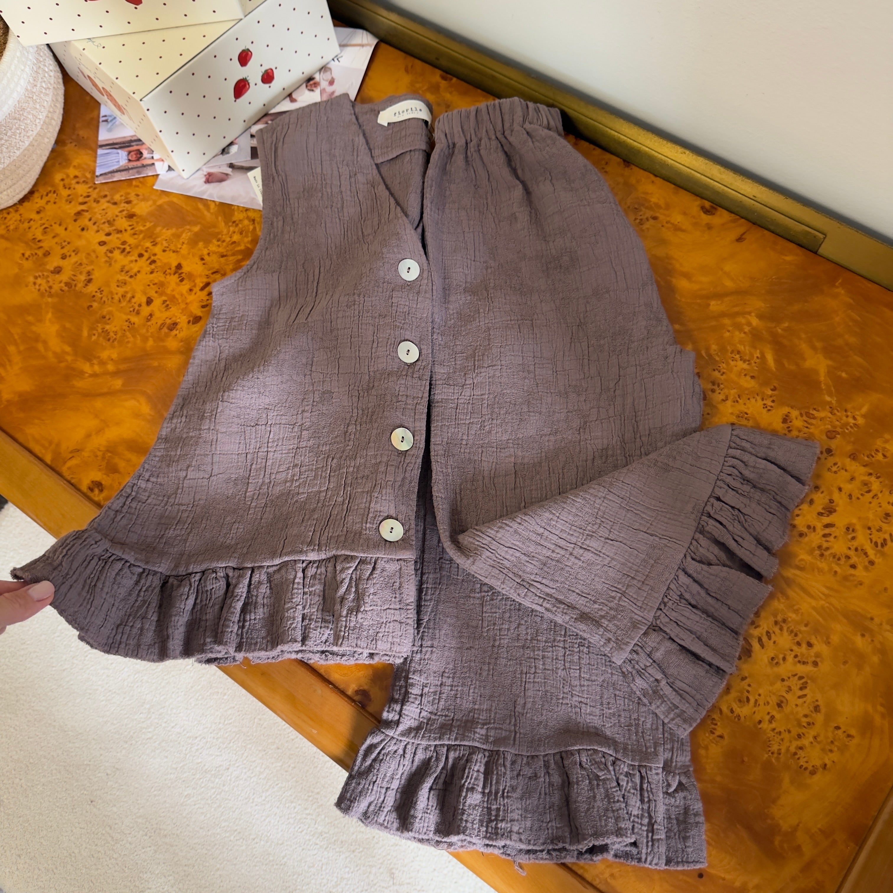 Cozmo - Mini abito scamiciato con bottoncini in madreperla e ruches sul fondo- malva