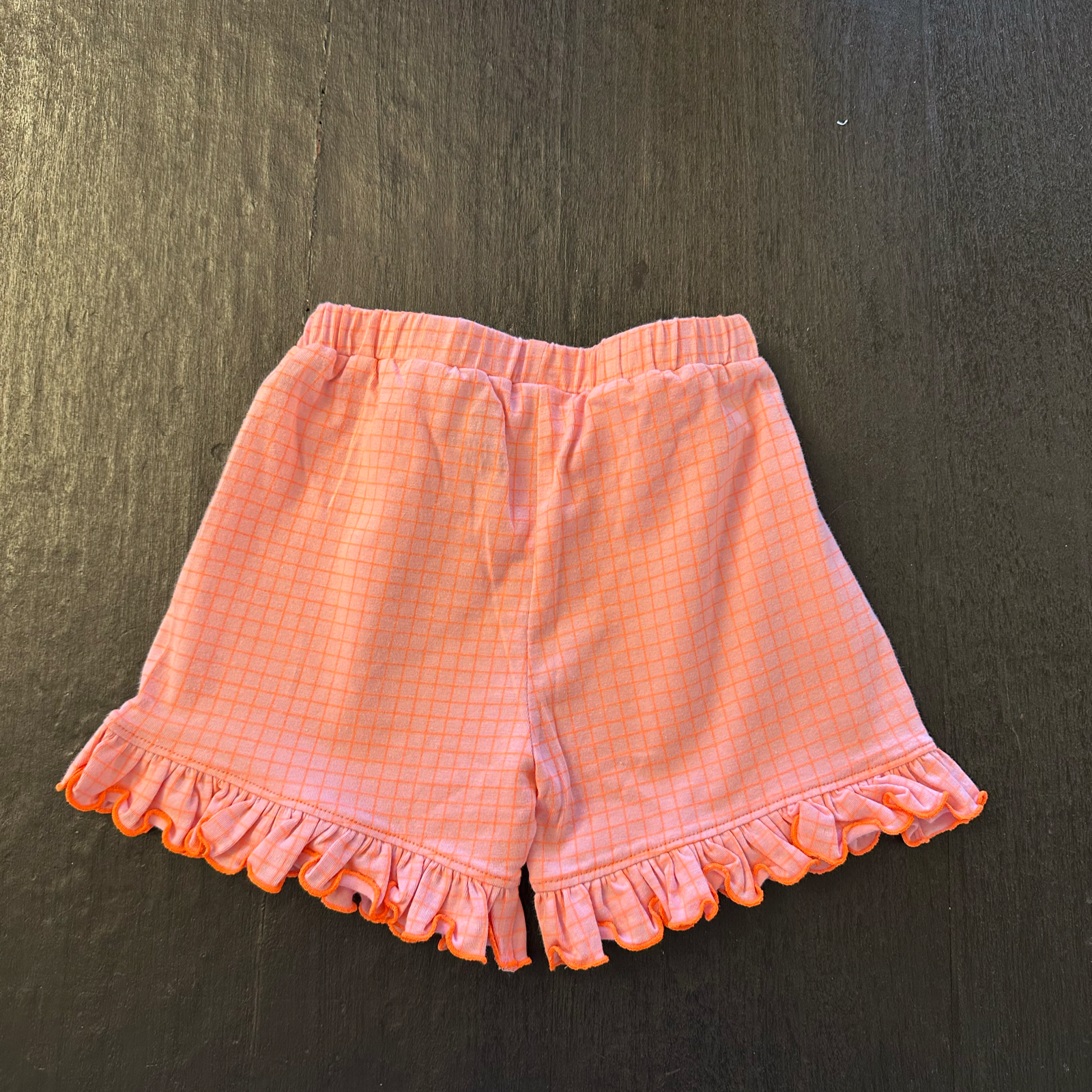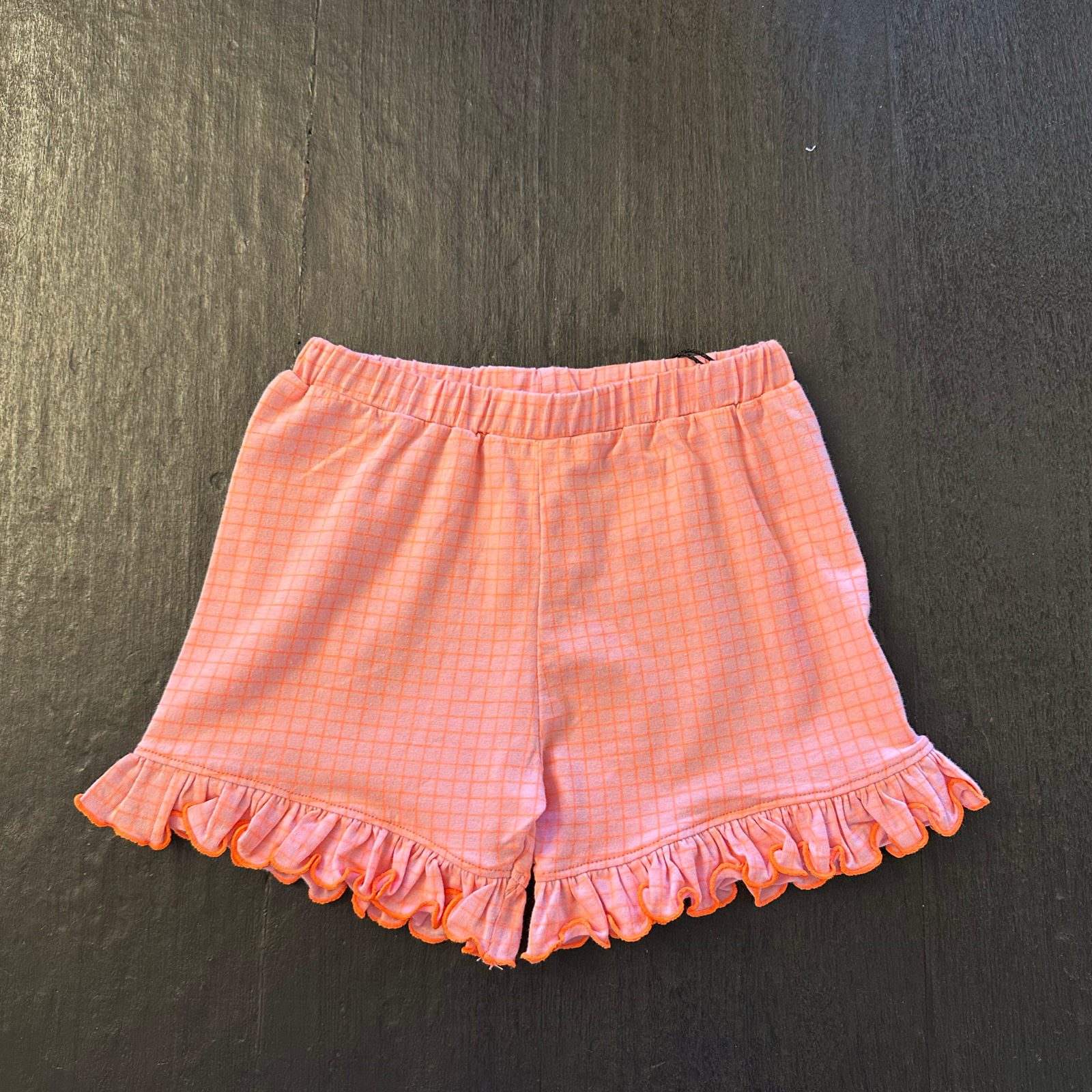 Pantaloncino in cotone a quadretti rosa fluo, con romantiche ruches sul fondo per un tocco di dolcezza. Leggero e comodo, perfetto per un look vivace e giocoso!