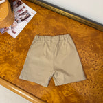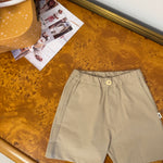 petit indi - Pantaloncino in seersucker nocciola con bottoncino in legno