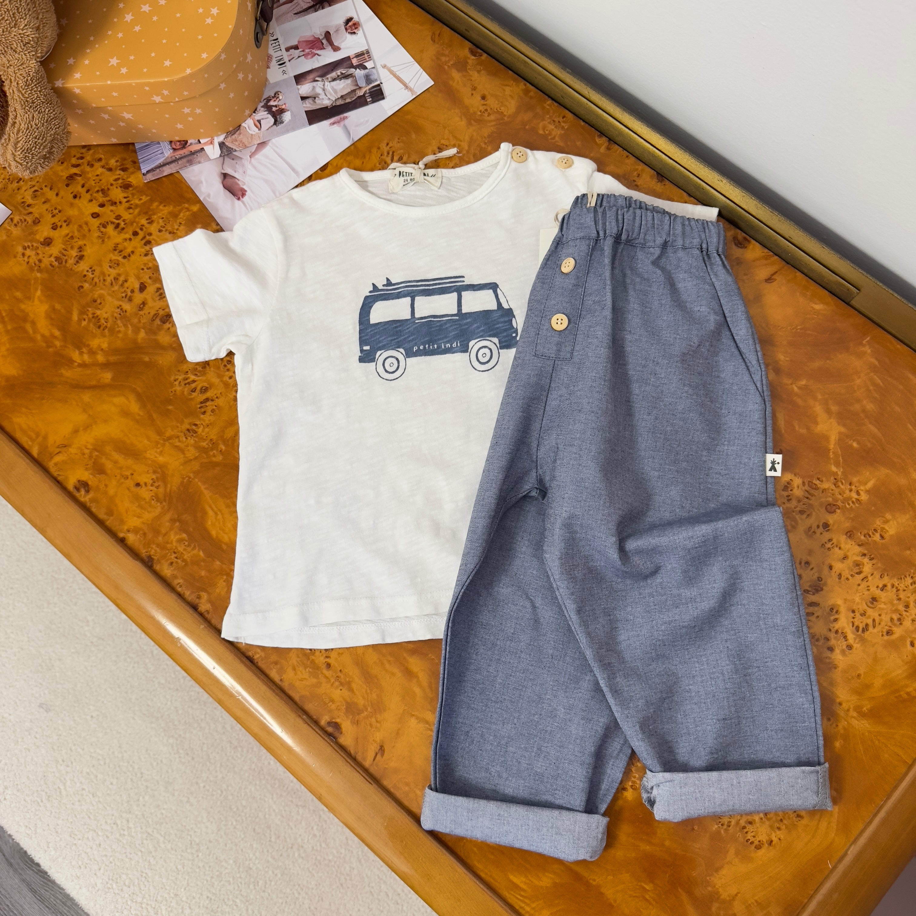 petit indi - Pantalone baggy in morbidissimo chambray di denim