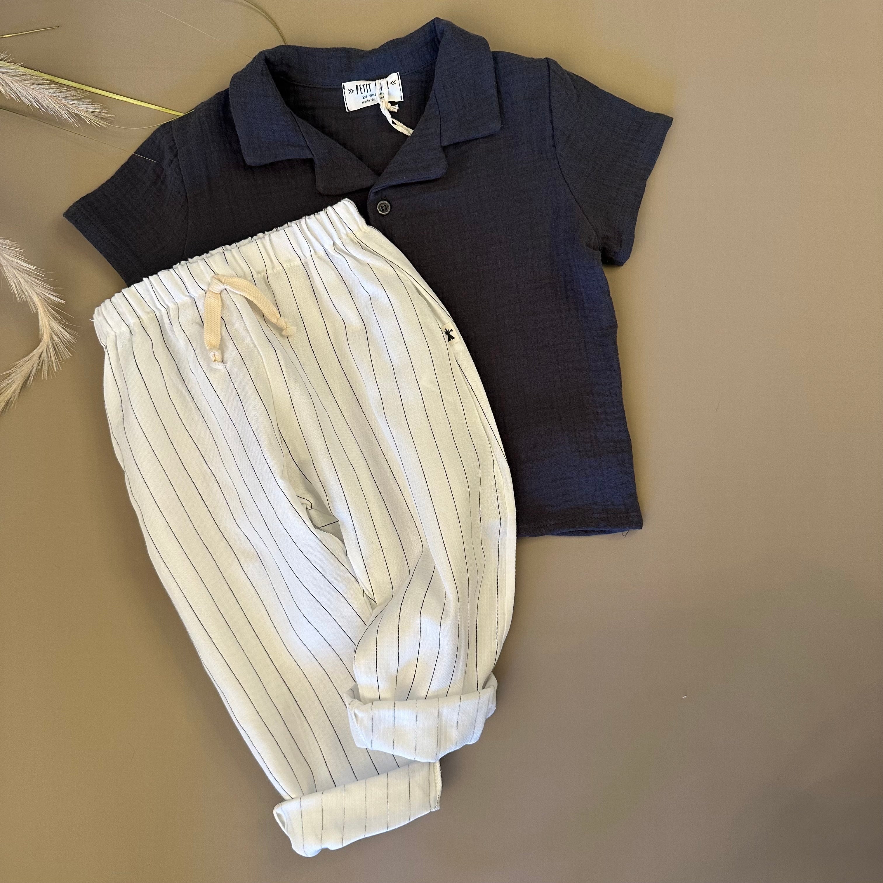 Un capo versatile dal fascino senza tempo. I pantaloni a righine antracite uniscono eleganza e comfort, con un design essenziale che si adatta a ogni occasione. La vestibilità confortevole e i dettagli curati li rendono perfetti per creare look raffinati e senza sforzo