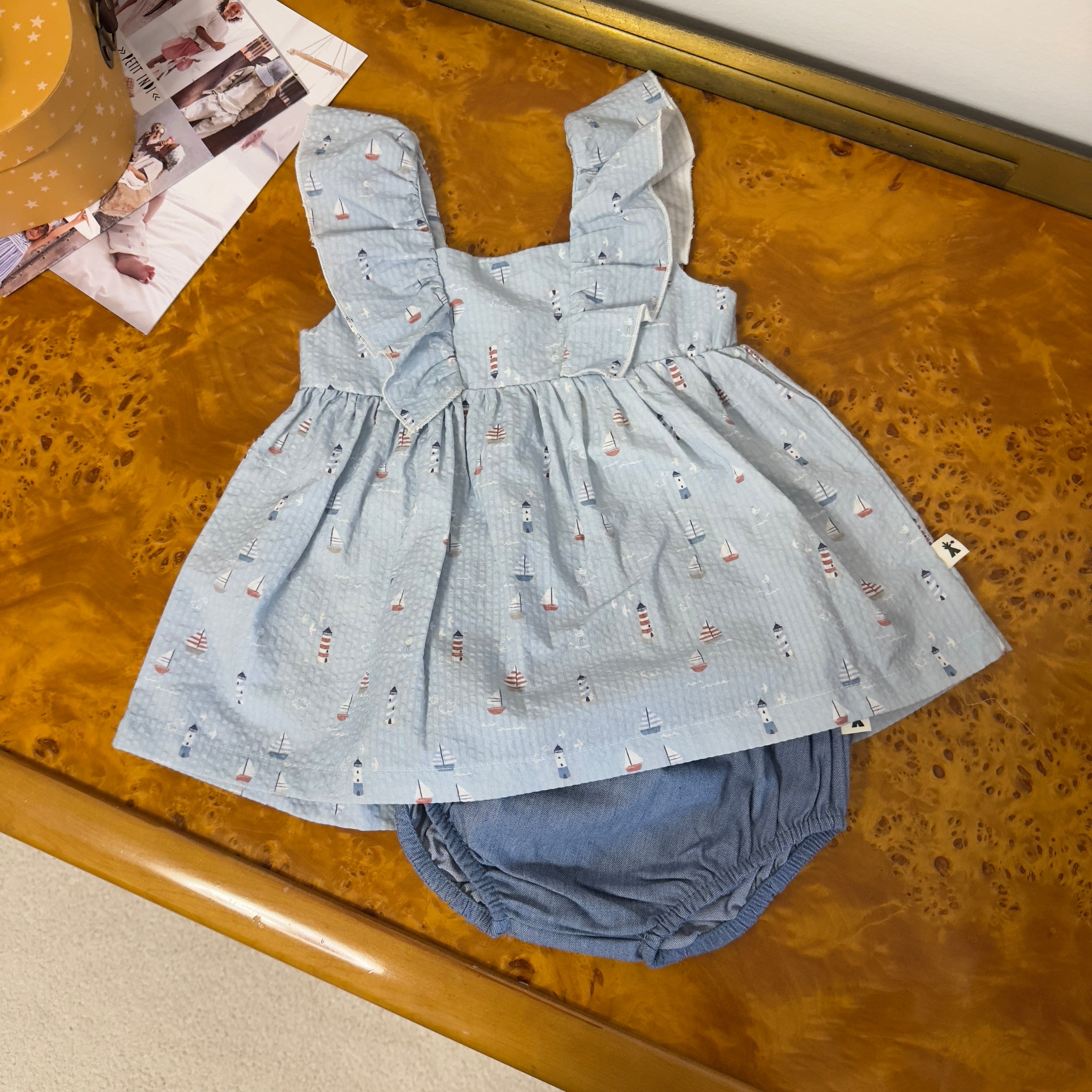 petit indi - Set coordinato abitino mare con barchette e il suo bloomer