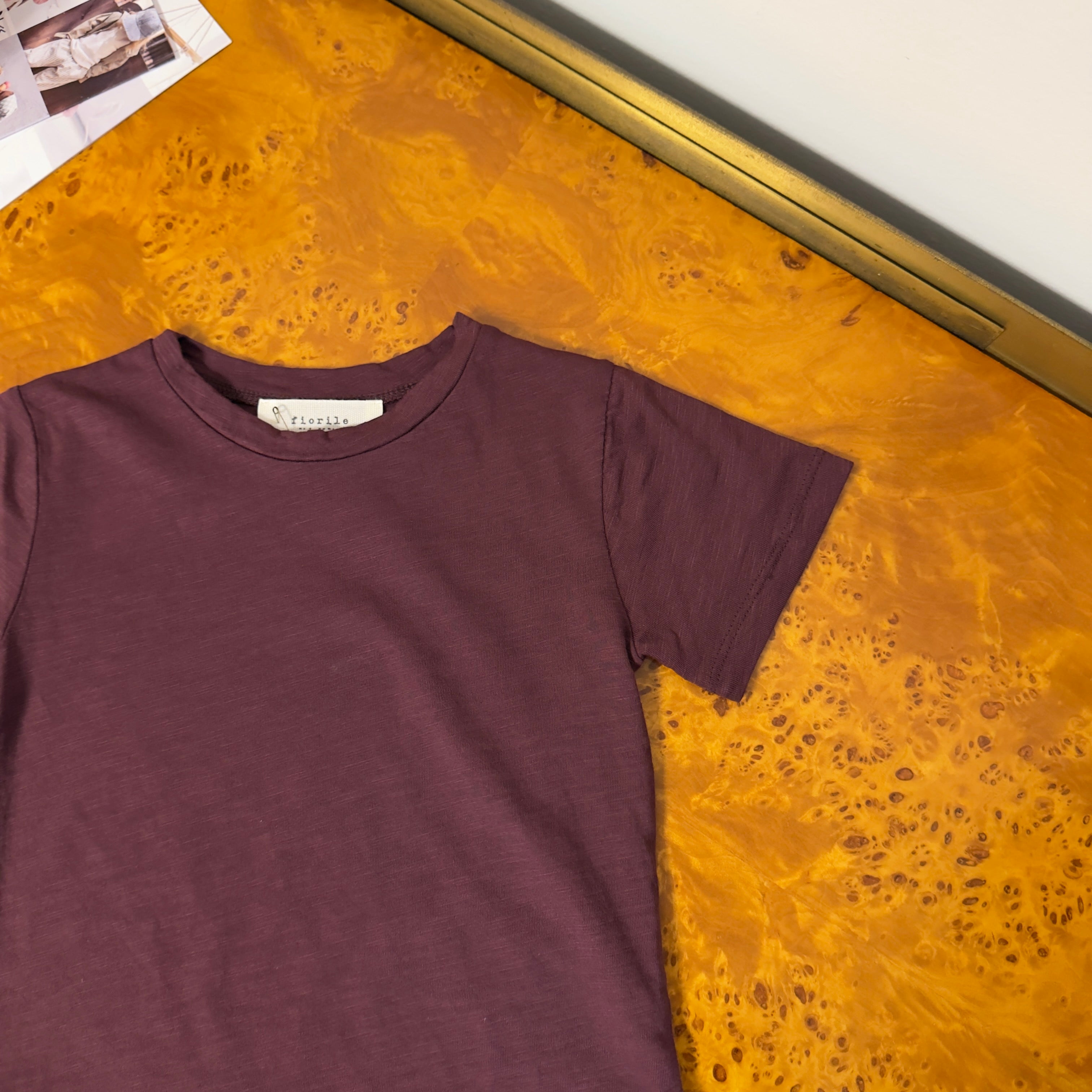 Cozmo - T-shirt basic borgogna in cotone fiammato morbidissimo- essenziale