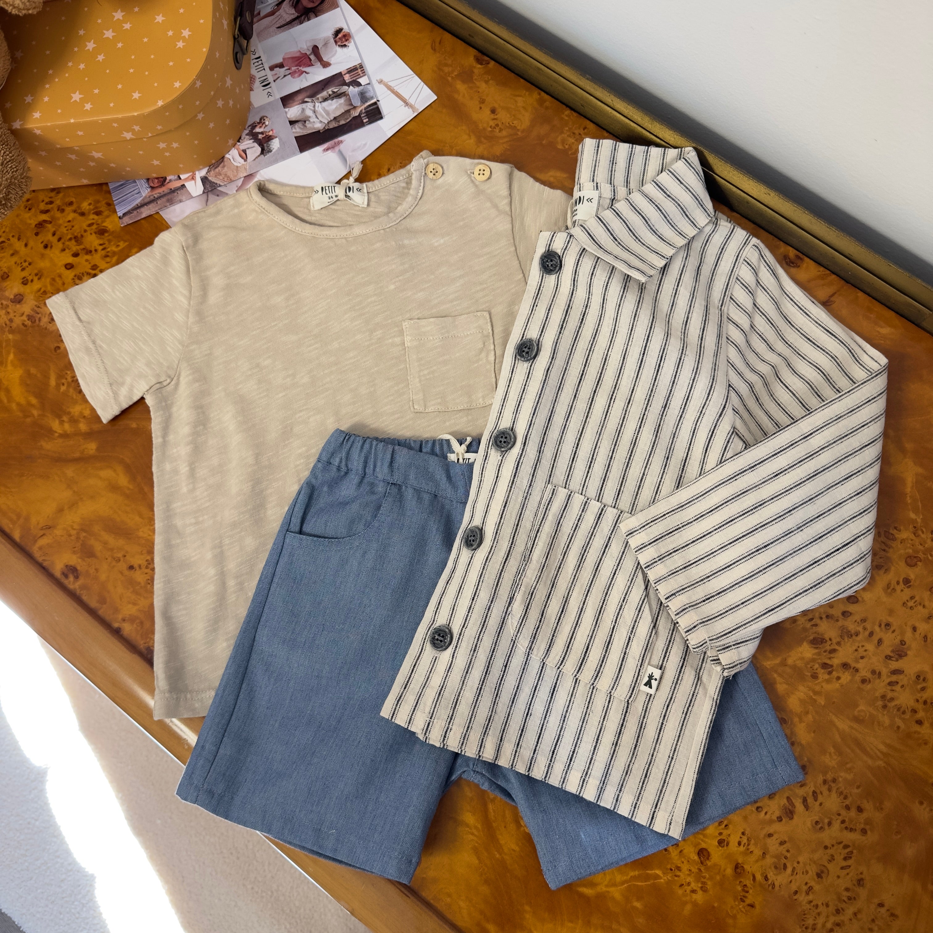 petit indi - T-shirt in cotone organico nocciola morbidissimo con taschina – comoda e versatile