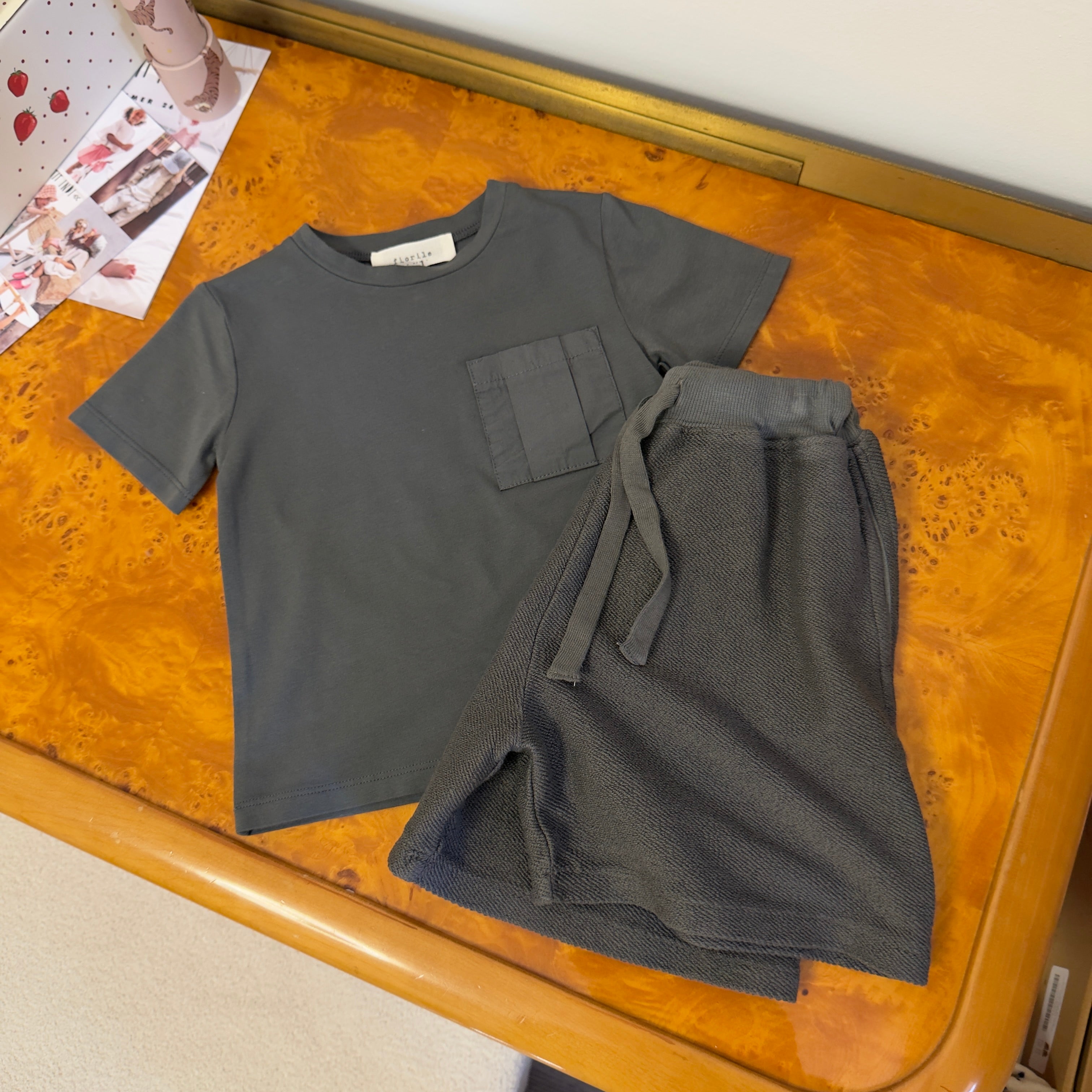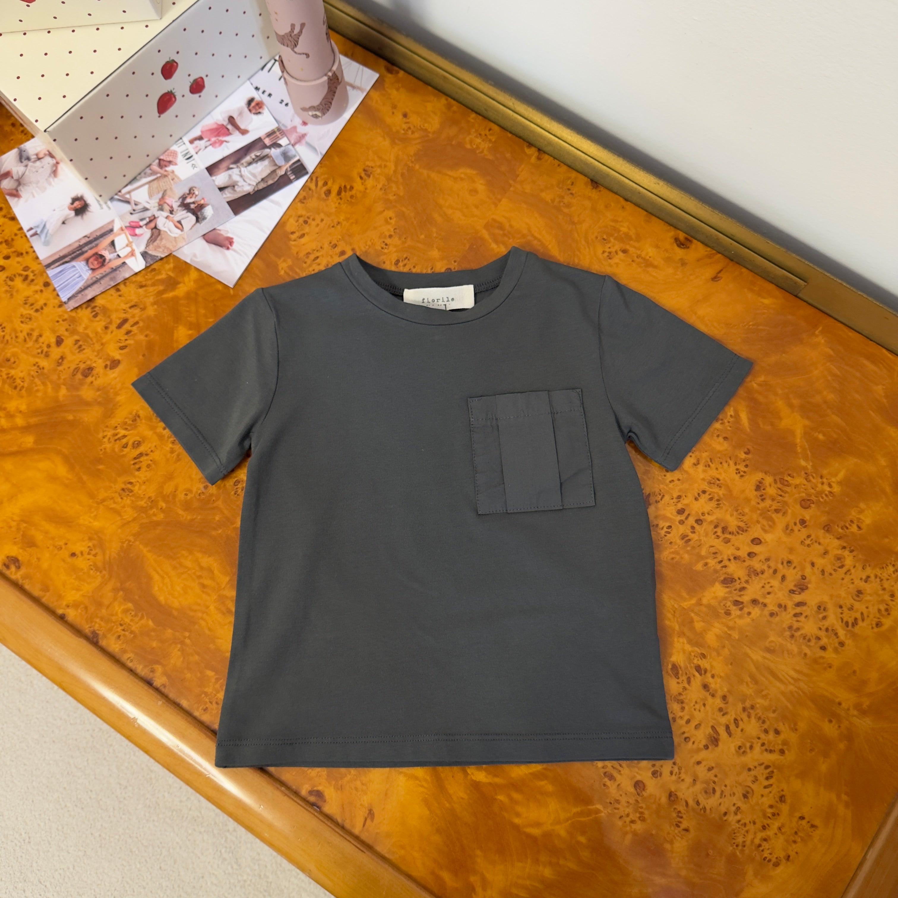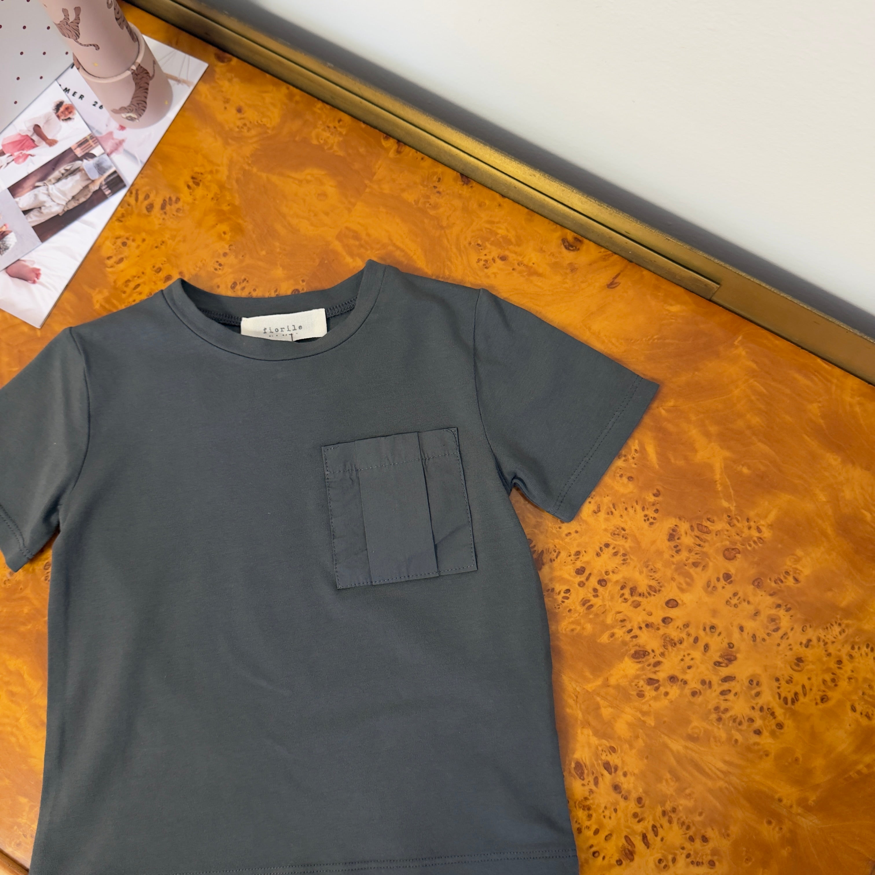 Cozmo - T-shirt in jersey di cotone color ardesia con taschino frontale