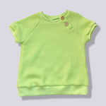 T-shirt waffer in cotone è un capo d'abbigliamento vivace e comodo, pensato per aggiungere un tocco di allegria e stile al guardaroba dei più piccoli.Realizzato in cotone di alta qualità, questo maglia assicura morbidezza e confortevolezza sulla pelle sensibile dei bambini. Il cotone è ideale per l'uso quotidiano, grazie alla sua capacità di assorbire l'umidità e mantenere il corpo fresco e asciutto. La trama "waffer", o waffle, caratterizzata da piccole celle quadrate o rettangolari in rilievo, aggiunge una dimensione tattile e visiva unica al capo, oltre a favorire la traspirabilità.Il design si concentra sulla comodità e sulla libertà di movimento, con caratteristiche che possono includere una vestibilità rilassata, maniche corte per la stagione calda, e un'apertura semplice sul collo per indossarlo e toglierlo facilmente.