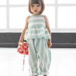 petit indi - Tuta in cotone leggerissimo riga salvia con ruches anteriore